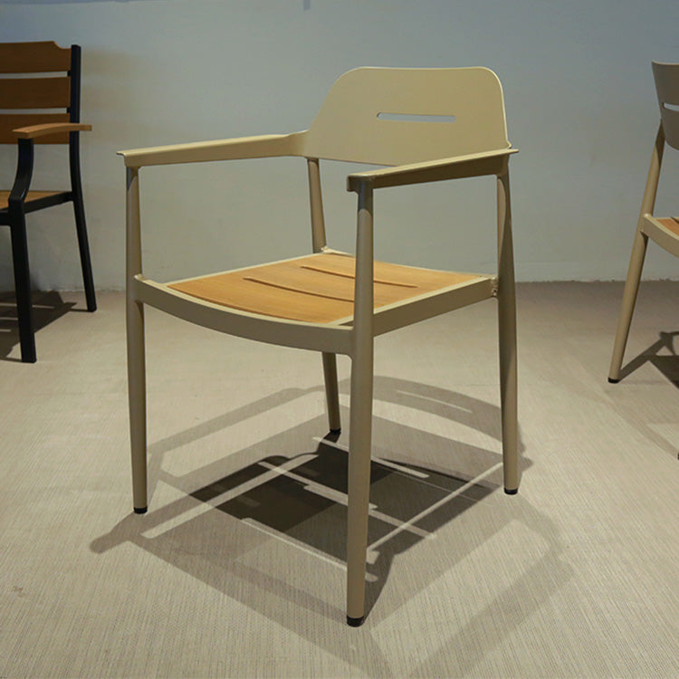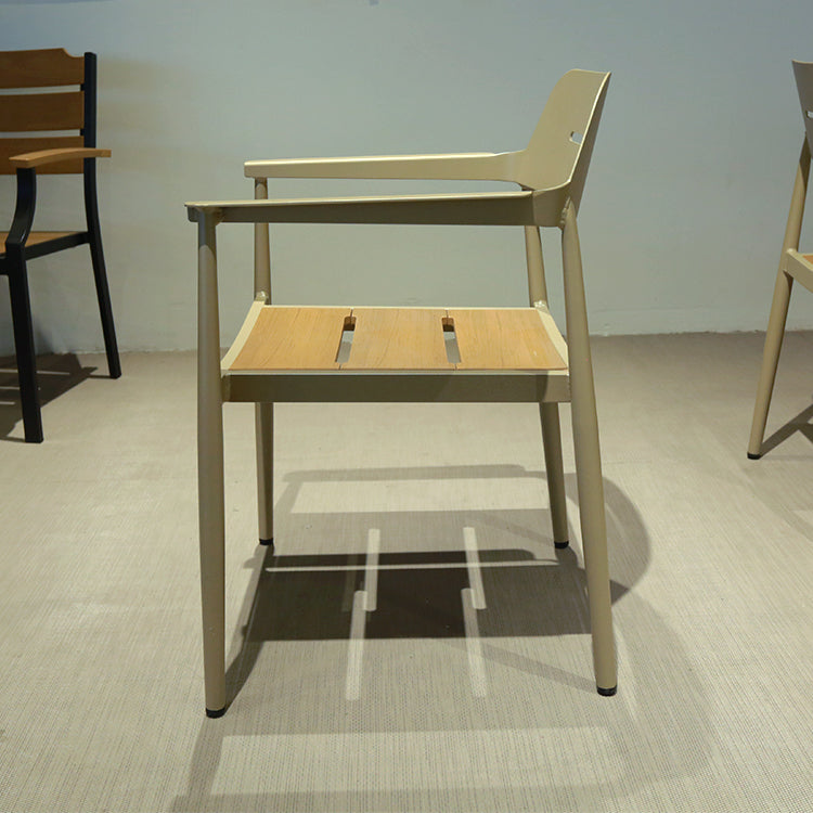Garden Dining Patio Aluminum Frame Restaurant Wooden Rectangular Table and 6 Stack Chairs